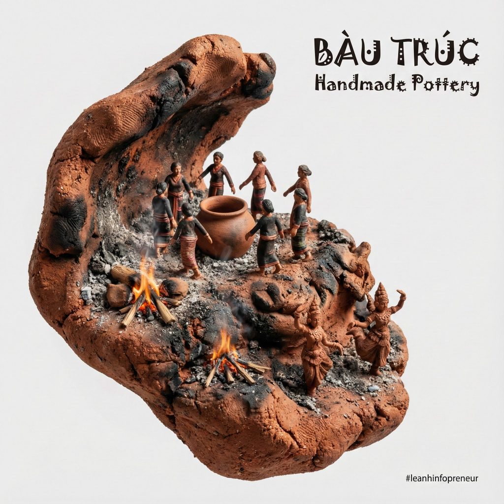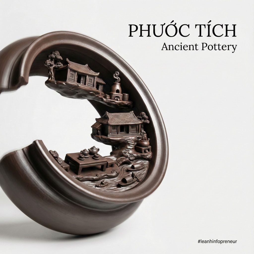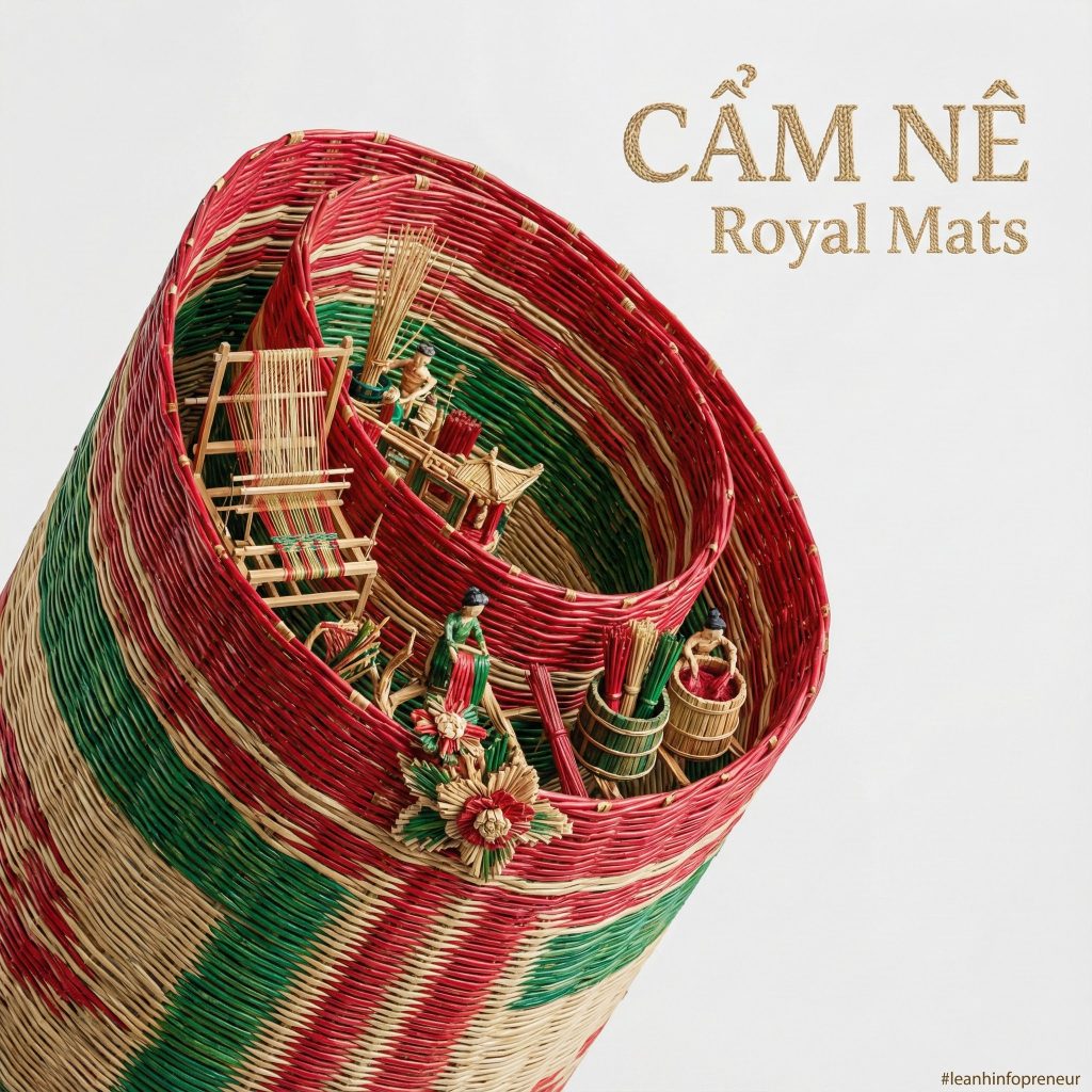 [ [Sử dụng prompt template sau để tạo prompt mới cho các địa danh làng nghề nổi tiếng ở Việt Nam. 1.Gốm Bát Tràng, 2.lụa Vạn Phúc, 3.tranh Đông Hồ (Bắc Ninh), 4.cốm Làng Vòng, 5.mây tre đan Phú Vinh, 6.thêu Quất Động, 7.hương Quảng Phú Cầu A [MACRO MEDIUM – e.g., stream of liquid gold, plume of smoke, silk ribbon], captured mid-motion, forming a dynamic [SHAPE – e.g., arc, spiral, wave] from the lower left to the upper right. Suspended within the [TEXTURE/MATERIAL] lives a miniature world of [MICRO SUBJECT – e.g., a city, a historical event, an ecosystem], rendered as highly detailed structures sculpted entirely from the [MACRO MEDIUM] itself. Inside the [MEDIUM]: [DETAIL 1], [DETAIL 2], and [DETAIL 3]. The forms appear [ADJECTIVE – e.g., woven, liquid, crystalline, glowing], strictly defined by the physics of the [MACRO MEDIUM]. Style: [PHOTOGRAPHY STYLE – e.g., Macro product photography] fused with [ARTISTIC GENRE – e.g., Ukiyo-e, Cyberpunk, Baroque painting]. High emphasis on texture, lighting, and material contrast. Color palette: [COLORS] derived naturally from the material. View & background:Plain, matte [BACKGROUND COLOR – usually Black or White] to create maximum contrast. Minimalist composition. Typography:Title: “[TITLE]” Subtitle: “[SUBTITLE]” Font style: [FONT DESCRIPTION] placed cleanly in the negative space. Composition rules:The [MEDIUM] creates a defined boundary. All details remain strictly inside the stroke/flow; nothing exists in the negative space. 8K, hyper-realistic texture, [LIGHTING STYLE].] ]