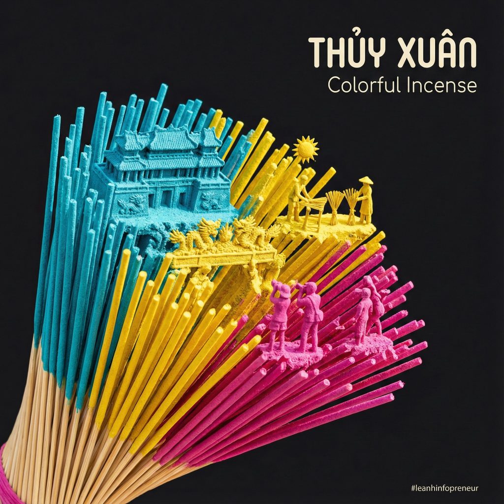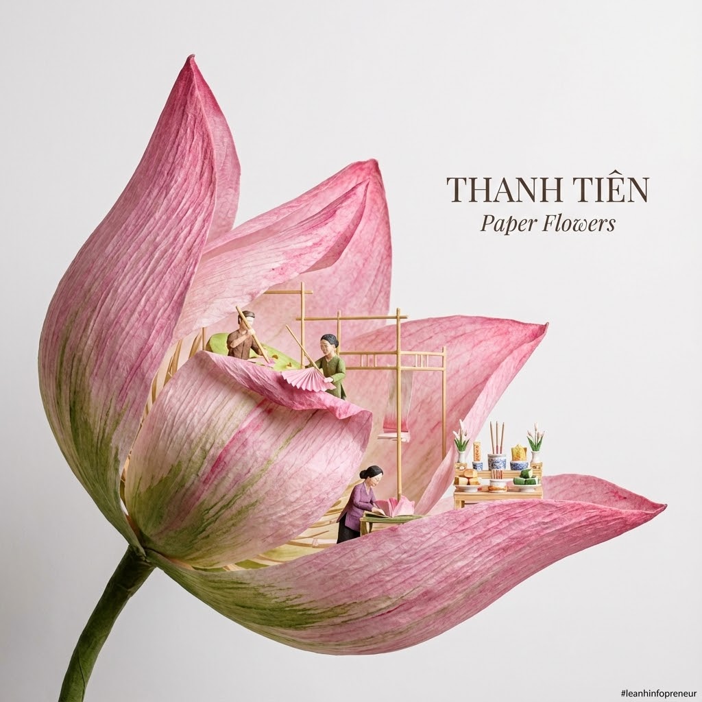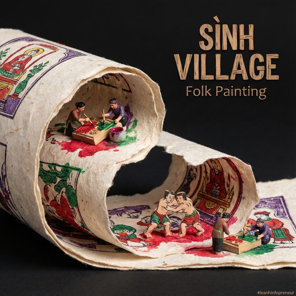 [ [Sử dụng prompt template sau để tạo prompt mới cho các địa danh làng nghề nổi tiếng ở Việt Nam. 1.Gốm Bát Tràng, 2.lụa Vạn Phúc, 3.tranh Đông Hồ (Bắc Ninh), 4.cốm Làng Vòng, 5.mây tre đan Phú Vinh, 6.thêu Quất Động, 7.hương Quảng Phú Cầu A [MACRO MEDIUM – e.g., stream of liquid gold, plume of smoke, silk ribbon], captured mid-motion, forming a dynamic [SHAPE – e.g., arc, spiral, wave] from the lower left to the upper right. Suspended within the [TEXTURE/MATERIAL] lives a miniature world of [MICRO SUBJECT – e.g., a city, a historical event, an ecosystem], rendered as highly detailed structures sculpted entirely from the [MACRO MEDIUM] itself. Inside the [MEDIUM]: [DETAIL 1], [DETAIL 2], and [DETAIL 3]. The forms appear [ADJECTIVE – e.g., woven, liquid, crystalline, glowing], strictly defined by the physics of the [MACRO MEDIUM]. Style: [PHOTOGRAPHY STYLE – e.g., Macro product photography] fused with [ARTISTIC GENRE – e.g., Ukiyo-e, Cyberpunk, Baroque painting]. High emphasis on texture, lighting, and material contrast. Color palette: [COLORS] derived naturally from the material. View & background:Plain, matte [BACKGROUND COLOR – usually Black or White] to create maximum contrast. Minimalist composition. Typography:Title: “[TITLE]” Subtitle: “[SUBTITLE]” Font style: [FONT DESCRIPTION] placed cleanly in the negative space. Composition rules:The [MEDIUM] creates a defined boundary. All details remain strictly inside the stroke/flow; nothing exists in the negative space. 8K, hyper-realistic texture, [LIGHTING STYLE].] ]