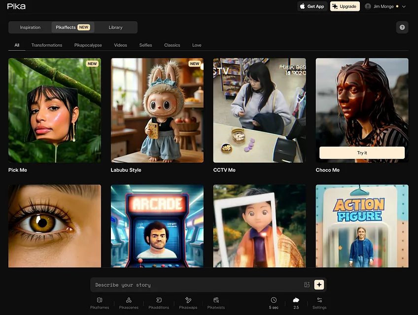 Pika Labs không cố gắng trở nên thực tế nhất, họ muốn trở nên vui nhất. Các nút “Pika Effects” cho phép bạn làm phồng, nổ tung, hay bóp méo vật thể ngay lập tức.